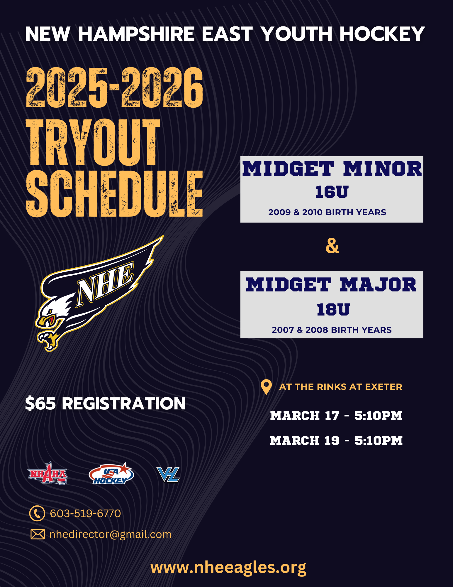 Welcome to the registration page for the 2025-2026 NH East Tryouts! If you have any questions, please reach out to Jeremy Tufts at nhedirector@gmail.com